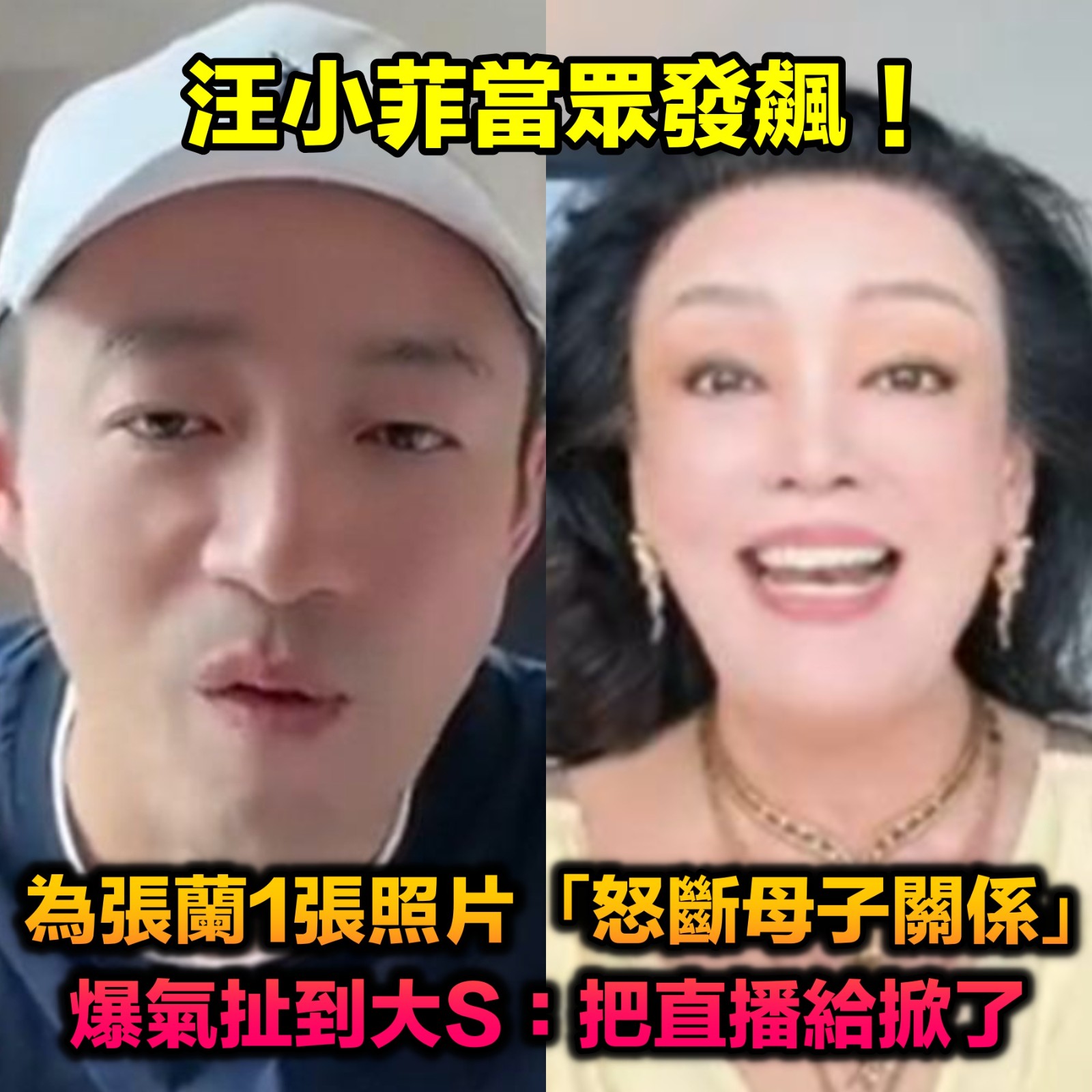 汪小菲當眾發飆!為張蘭1張照片「怒斷母子關係」 爆氣扯到大S:「把直播給掀了」 力量人 2026-03-13 檢舉 分享到 Facebook 但說到最後,汪小菲也承認自己拿張蘭沒轍,無奈地說,「我要是真有本事,也不會落到今天這個地步,我已經被迫退網了」,言下之意是他根本也無力改變母親的行為模式。圖片來源:微博有這樣的媽媽也是辛苦,還是希望汪小菲早日脫離張蘭掌控吧~資料來源:TVBS新聞網 Advertisements 回首頁 2/2 Advertisements 編輯精選推薦 More + 24歲兒失明!于美人爆「他在飯店掃廁所」維生 不盼紅包只求「別再花我的錢」 離婚11年!洪榮宏愛女結婚「終破冰前妻」 「2爸爸牽她進場」催淚畫面曝 趕在40歲前閃婚!八點檔女星「宣布嫁給他」 尪驚人身分曝「媒人是柯叔元」 交往7個月就閃婚!小17歲妻遭質疑「嫁沈玉琳是為了錢」 婚後負債3千萬「芽芽一句話」網看哭 大咖男星妹妹出嫁!全身金飾「曾獲近千萬豪宅」嫁妝豐厚 兄妹長超像「一看媽媽懂了」:基因強大 65歲男星獨居暴斃!大咖女星放下恩怨「送前夫最後一程」 昔遭動手6年嘆「死者為大」 離婚18年!前夫早知方文琳罹癌「願意付手術費」 「1理由遭拒」爆她術後狀況 李英愛輸了!73歲富商尪「超凍齡像40壯年」站一起超登對 「不時甜蜜咬耳朵」網羨慕 最新/3度中風送醫!資深男星爆離婚「斷50年髮妻」 「砸1億淨身出戶」家族爆紛爭 功德圓滿了!台語歌后「悲曝他離世」享壽95歲 淚喊:去當快樂的神仙吧... 台語歌后慟別摯愛!告別式上認「早隱瞞病情」 道歉哭喊:原諒我簽放棄急救 22歲愛女病逝!資深男星「走不出喪女痛」留白長髮現身 掛骨灰項鍊「代女做1事」惹淚 旅美多年!資深女星「堅持落葉歸根」回國5天安詳離世 死前「砸600萬做1事」眾人淚目 滿街都在穿!醫點名「這款鞋」少穿為妙:恐讓脊椎變形 教你「1招看腿型」秒挑到好鞋 晚年隱居台東!68歲名主持失蹤「車內身亡」 伴侶悲曝「死前做1事」:還掛念著我 打破年齡偏見!62歲影后「紅毯穿開深V粉裙」成全場最美 一轉身「超辣腰背線條」:比26歲還美 空窗多年!68歲陳美鳳突羞認「身邊有個他」 40年前就認識「遭男方母親拆散」 慶祝17歲愛女畢業!53歲大咖「兒女皆讀名校」年花千萬 驕傲「她獲三大獎」:又美又自信 當年親吻1歲嬰!42年後「對方竟成巨星」同框劉德華 「超高顏值如兄弟」粉絲喊:真的差19歲? 本土劇女星生了!7年前凍卵「終於來到我身邊」 歌手尪嗨喊:生個足球隊 登國際時裝周美翻!49歲舒淇「剪掉多年大長髮」 短髮封神「一轉身側面全空」驚艷米蘭 最新/賈靜雯深夜慟曝「她已離世」 淚PO合照喊:真的好愛你... 以為只是小感冒!本土女星悲痛證實「他併發肺炎過世」 一度淚灑現場「後悔同意插管」 44歲許維恩罹乳癌!醫示警「3日常用品」易致癌:別碰才能保命 快養不起小孩!本土男星「開計程車、斜槓房仲」 突宣布「離開台灣」:演藝圈沒工作