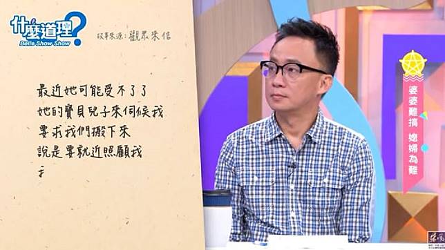 不過更誇張的是,最近她懷上孩子正在養胎,所以很多工作都是由老公負責,聽起來天經地義,然而傳到婆婆耳裡卻相當不舒服,受不了寶貝兒子要伺候媳婦,要求小倆口馬上搬到樓下跟她同住,宣稱是要「就近照顧媳婦」,但是卻讓她心力交瘁,不知道該怎麼辦。