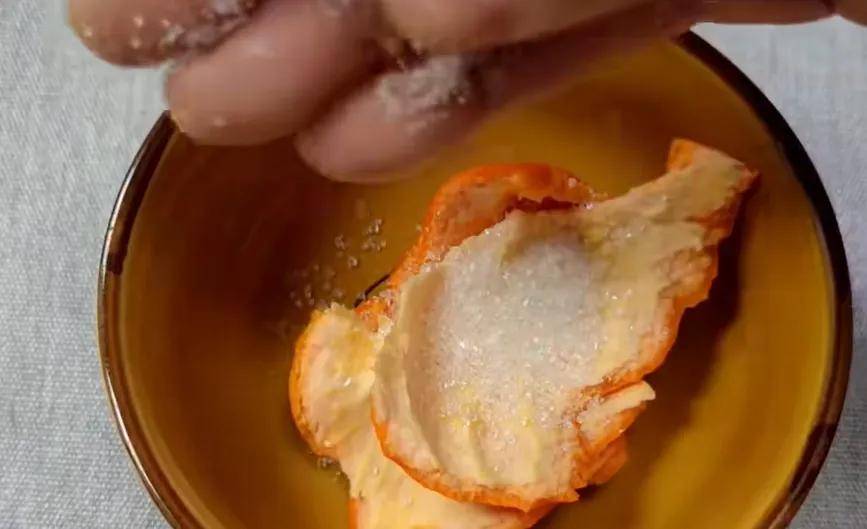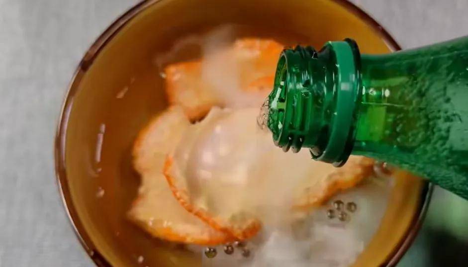 首先,準備一個小碗,然後放入一些水果皮,如橘子皮、蘋果皮,任何水果皮都可以。接著,再加入一些白糖,然後倒入適量的雪碧,直到覆蓋住水果皮為止。