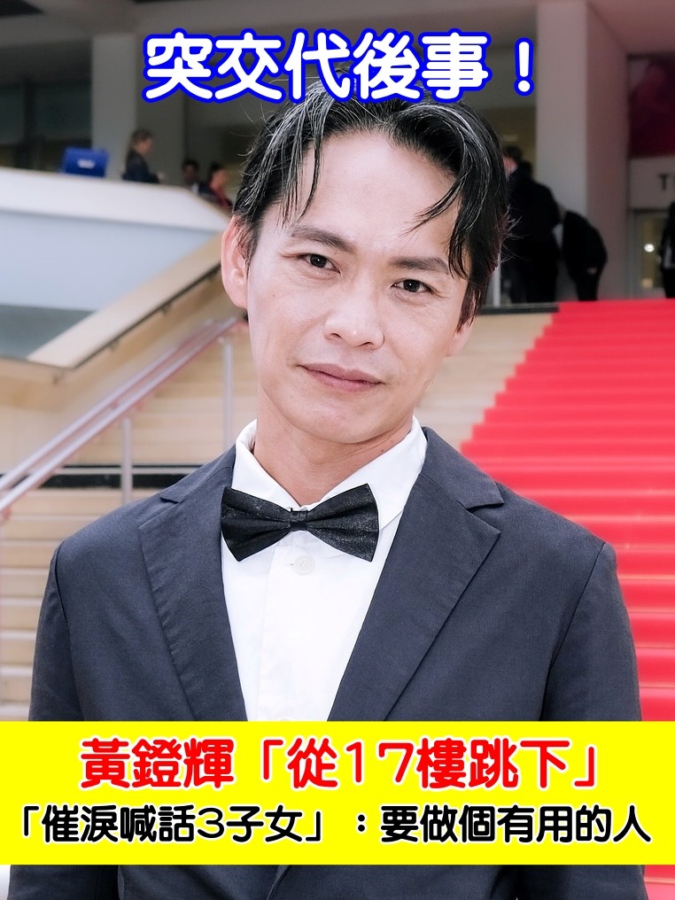資深男星黃鐙輝,無論是綜藝主持、或是演技表現,都十分亮眼,頗有觀眾緣!戲外,他也是個愛家寵妻的好老公、好爸爸,和老婆萁萁結婚16年,育有一女二子,十分美滿幸福。然而,近日卻爆出他毅然決然從17樓跳下,甚至對鏡頭交代後事...