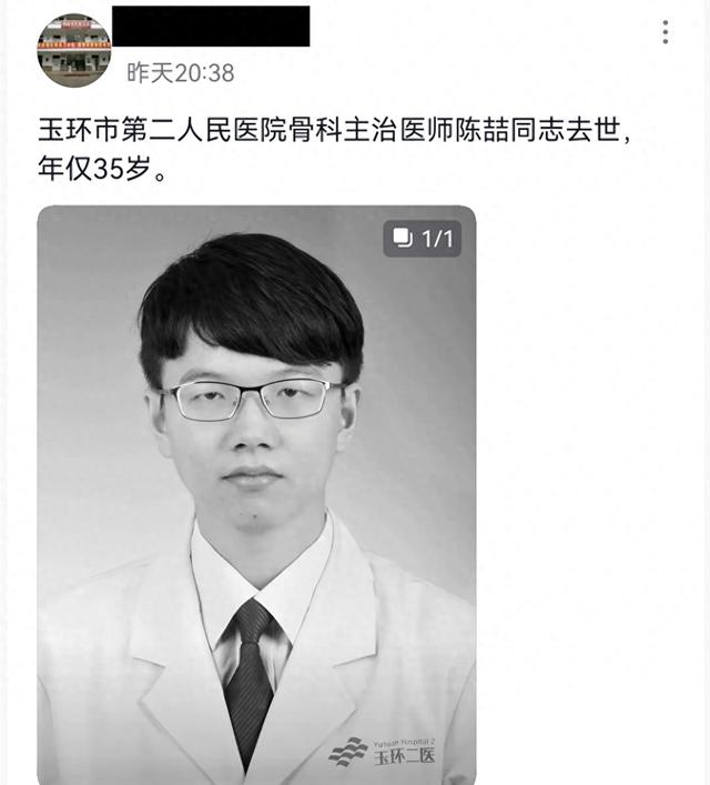 目前,玉環市第二人民醫院已於4月7日晚發布了陳喆醫生的訃告。