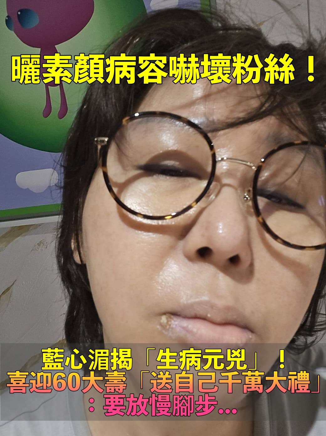 素顏病容震撼粉絲!藍心湄自揭「生病元兇是自己」 迎60大壽「砸千萬送自己大禮」:要放慢腳步
