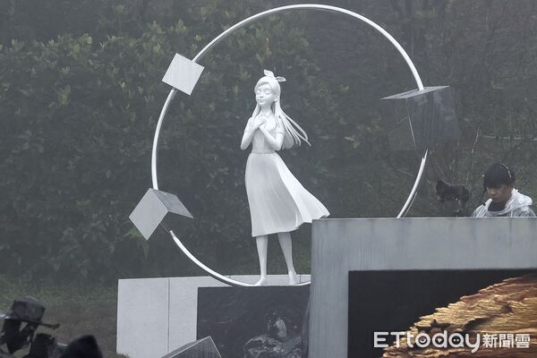 當具俊曄親手拉下粉紅布幔那刻,以白色為基調的雕像映入眾人眼簾,作品細膩呈現大S生前典雅氣質,只見雕像中她雙手輕放胸前、雙眼微闔,臉上掛著恬靜淺笑,頭頂特別繫上象徵其少女情懷的蝴蝶結裝飾,身著線條流暢的百褶長洋裝,裙擺彷若在細雨中隨風飄逸。
