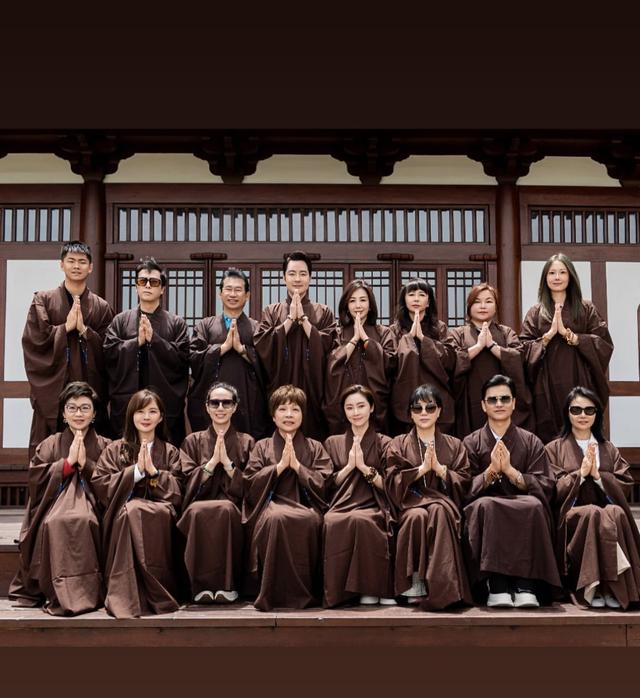 張玉珊並非獨自一人前往,她的現任男友盧啟賢也在場相伴,不過合照的時候兩人並沒一起,盧啟賢站在第二排,張玉珊站在前排,與大家一樣雙手合十,表現虔誠。同行的還有呂良偉楊小娟夫婦,在合照中呂良偉最搶鏡,因為他總是戴著墨鏡,看起來就是與眾不同,加之身材也高挑,就更顯眼。而呂良偉的太太楊小娟也很好認,她一身富態,又拎著名牌包包,重點是總是站在C位,給人的感覺就是低調之中也顯露奢華感。相對而言,張玉珊是真低調,不過她氣質很好,一頭短髮很清爽,真是保養得宜,不站C位也搶鏡。