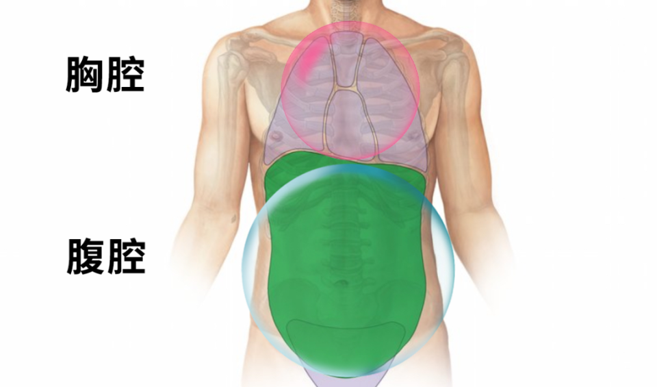 我們軀幹中有兩個腔體──胸腔和腹腔。兩者透過中間層的膈肌相連,呼吸時,膈肌會像「蹦床」一樣,飽滿而有彈性地下沉和上彈。