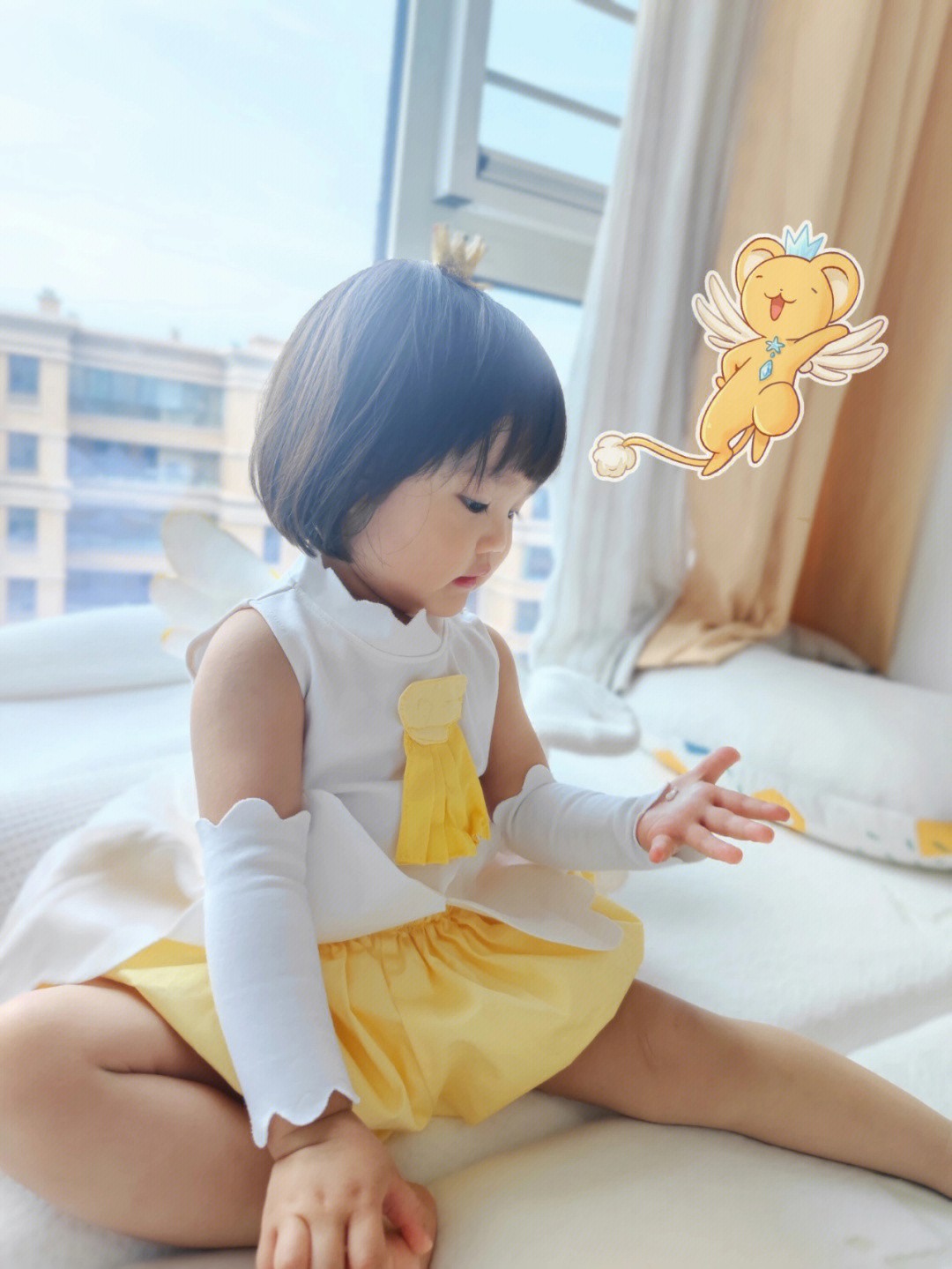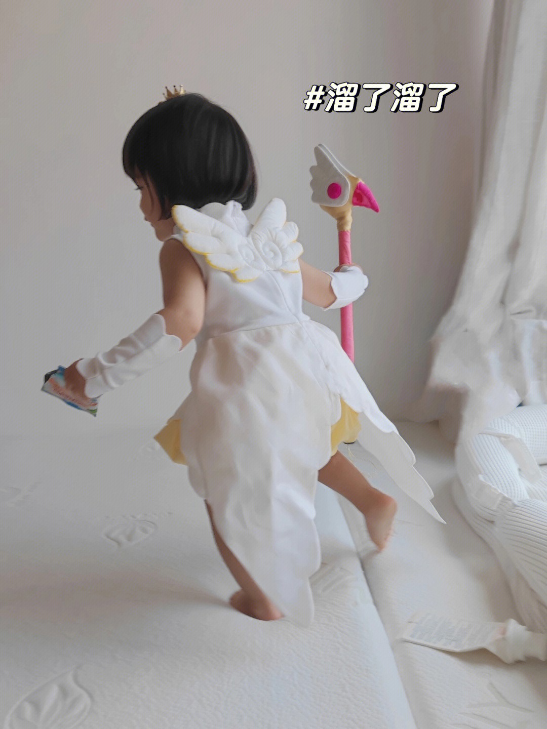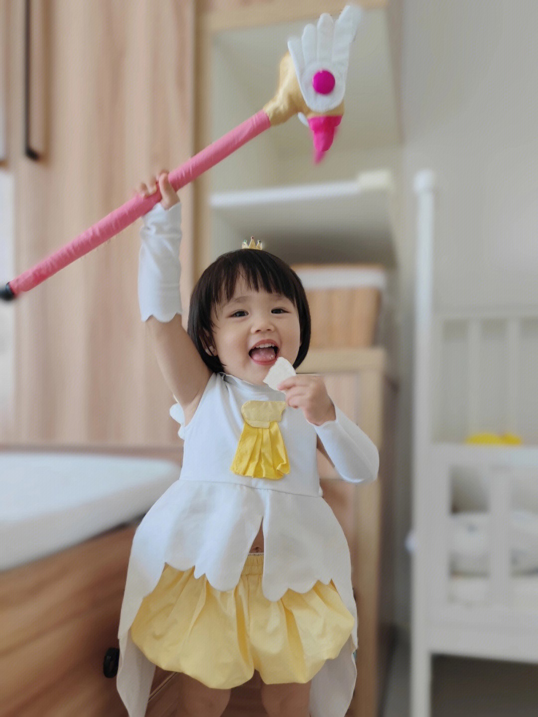 而且背後的小翅膀都能做出來,再加上孫女手上的庫洛魔法杖,簡直就是小櫻本尊現身!