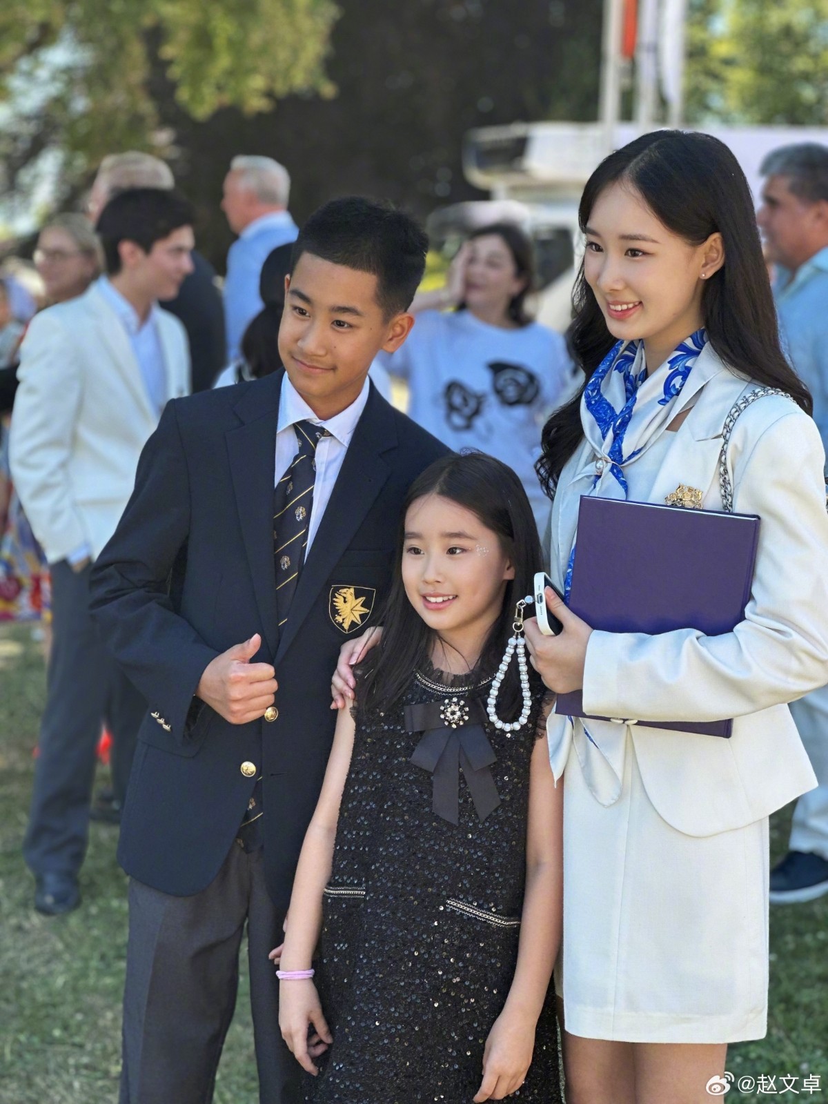 付出多年心血,17歲趙子儀不負父母期望,在畢業典禮上脫穎而出,趙文卓也在微博曬出全家福照,驕傲表示:「恭喜大女兒趙子儀『玫瑰』高中畢業,並拿了生物、藝術和最高成就大獎,弟弟趙子龍也拿了一個三顆鷹榮譽獎。」小女兒趙子月也受到姊姊與哥哥的鼓舞,為他們努力鼓掌!