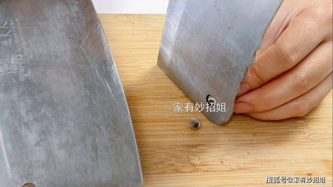炒螺螄就是很多朋友都喜歡的一道美食了,可能平常想吃炒螺螄了,我們一般都會選擇去外面購買,這個螺螄都是已經處理好的。但要是遇到自己撿的螺螄,就需要我們回家慢慢處理了。而處理螺螄,除了要將它清洗乾淨外,最重要的就是要把螺螄的尾部給切掉,但由於螺螄尾細小又光滑,沒有專門的工具,就很難將它給弄掉了。其實這個時候,菜刀上的小圓孔就是去螺螄尾的好工具。只要先把菜刀用力扎在菜板上,然後拿個螺螄,將螺螄尾塞進菜刀的圓孔中,這樣就剛好會有一點螺螄尾漏出來。