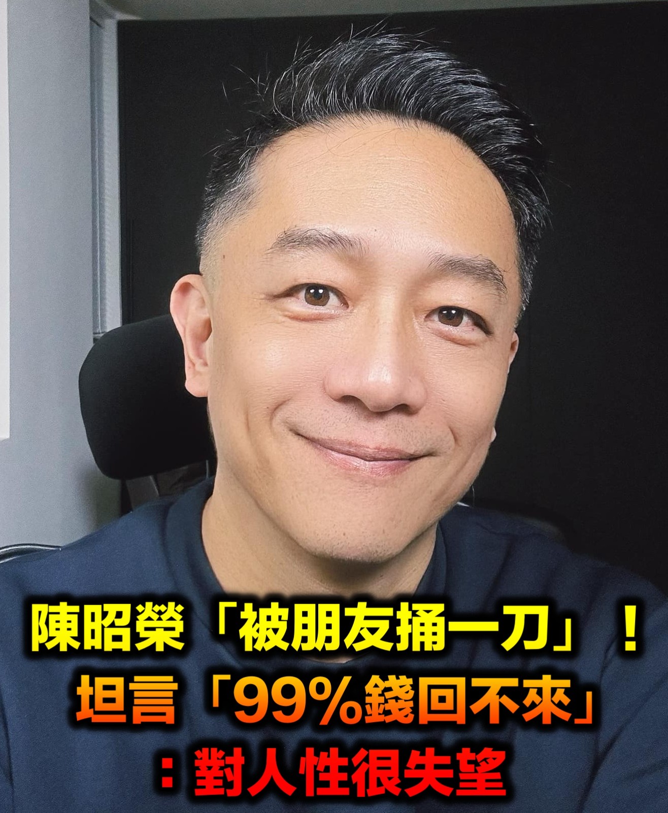 被朋友捅一刀!57歲陳昭榮痛批「99%錢回不來」被當冤大頭 心涼發文:「對人性很失望」 Elmo 2026-04-16 檢舉 分享到 Facebook 陳昭榮強調,雖然自己不是要去計較金錢,可是至少對於借錢、還不出錢這件事情要有誠意、有歉意,願意負責才對。陳昭榮表示現在對人性很失望:「隨著年紀增長,越來越冷漠,拒絕無意義的應酬,這年頭太多騙子了,也別再找我聊投資!」也表示現在活得好、健康樂活,才是最大的財富。天啊不還錢真的很過分耶...資料來源:《三立新聞網》 Advertisements 回首頁 2/2 Advertisements 猜你會喜歡 太突然!余祥銓「痛哭失去摯愛」 老婆抱女兒「讓她再看最後一眼」:跟菩薩修行了... 求子7年有喜了?48歲楊謹華「鬆口已經當媽」 幸福認「是一輩子的緣分」 女人45歲後!要牢記「頭髮不過肩」法則 最新流行5款「不過肩」的髮型:有氣質顯臉小 編輯精選推薦 More + 昔為父還9000萬債!方季惟罹癌重生「歡慶59歲生日」 不婚不生「發現2顆腫瘤」笑喊:看淡一切 大咖男星妹妹出嫁!全身金飾「曾獲近千萬豪宅」嫁妝豐厚 兄妹長超像「一看媽媽懂了」:基因強大 台灣大咖病逝「享壽83歲」!周遊告別式痛哭「認婚內出軌」:兒子很恨我... 44歲許維恩罹乳癌!醫示警「3日常用品」易致癌:別碰才能保命 65歲男星獨居暴斃!大咖女星放下恩怨「送前夫最後一程」 昔遭動手6年嘆「死者為大」 本土劇女星生了!7年前凍卵「終於來到我身邊」 歌手尪嗨喊:生個足球隊 功德圓滿了!台語歌后「悲曝他離世」享壽95歲 淚喊:去當快樂的神仙吧... 24歲兒失明!于美人爆「他在飯店掃廁所」維生 不盼紅包只求「別再花我的錢」 最新/3度中風送醫!資深男星爆離婚「斷50年髮妻」 「砸1億淨身出戶」家族爆紛爭 慶祝17歲愛女畢業!53歲大咖「兒女皆讀名校」年花千萬 驕傲「她獲三大獎」:又美又自信 事業風光情路坎坷!77歲女神「渣夫出軌還求復合」 她單身至今「被偶遇驚天一幕」:根本反人類 送別亡夫3年!丁強遺孀「不投靠美國兒女」 獨留台灣「76歲拒健康檢查」原因曝光 85歲失智父身亡!林葉亭突宣布「皈依佛門」 遇大師「開示一番話」忍不住淚崩 最新/賈靜雯深夜慟曝「她已離世」 淚PO合照喊:真的好愛你... 蔡小虎接噩耗「驅車360里路」南下見她最後一面 「堅持續命3個月」慘痛代價曝光 旅美多年!資深女星「堅持落葉歸根」回國5天安詳離世 死前「砸600萬做1事」眾人淚目 趕在40歲前閃婚!八點檔女星「宣布嫁給他」 尪驚人身分曝「媒人是柯叔元」 弟成植物人、姊猝逝!玉女歌手「遭前夫設套」騙走娘家房產 「狠斬16年婚姻」近況曝 快養不起小孩!本土男星「開計程車、斜槓房仲」 突宣布「離開台灣」:演藝圈沒工作 晚年隱居台東!68歲名主持失蹤「車內身亡」 伴侶悲曝「死前做1事」:還掛念著我 當年親吻1歲嬰!42年後「對方竟成巨星」同框劉德華 「超高顏值如兄弟」粉絲喊:真的差19歲? 離婚11年!洪榮宏愛女結婚「終破冰前妻」 「2爸爸牽她進場」催淚畫面曝 千萬起家厝賣掉了!張秀卿認手頭緊「為女兒月花20萬」 她超爭氣「進軍美國」成台灣之光 空窗多年!68歲陳美鳳突羞認「身邊有個他」 40年前就認識「遭男方母親拆散」 22歲愛女病逝!資深男星「走不出喪女痛」留白長髮現身 掛骨灰項鍊「代女做1事」惹淚