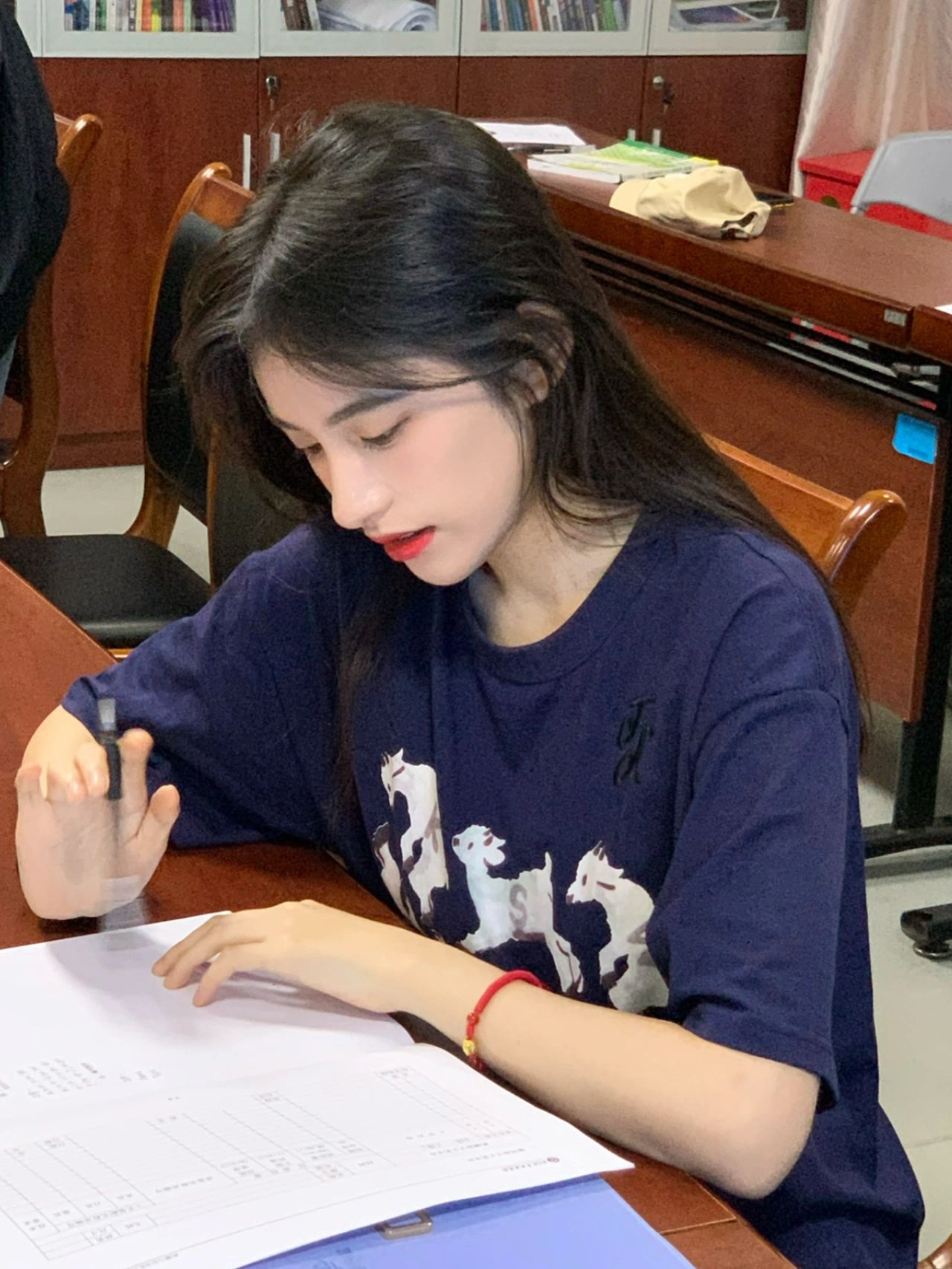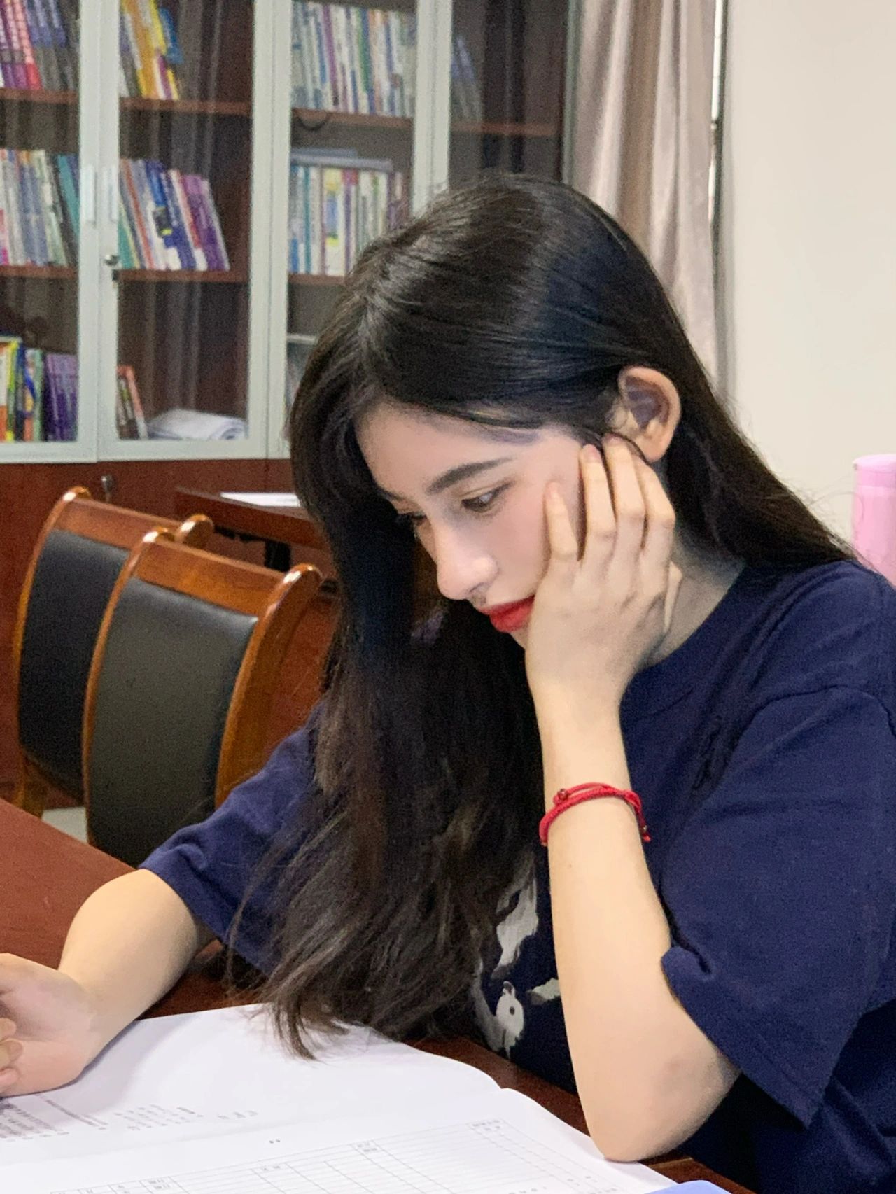 小紅書@黑黑草梅 某天剛好到圖書館讀書,一抬頭就發現對面坐著一位氣質清新的美女,正在低頭用功唸書,一頭黑色披肩長髮,加上白皙的皮膚,整個仙氣飄飄~