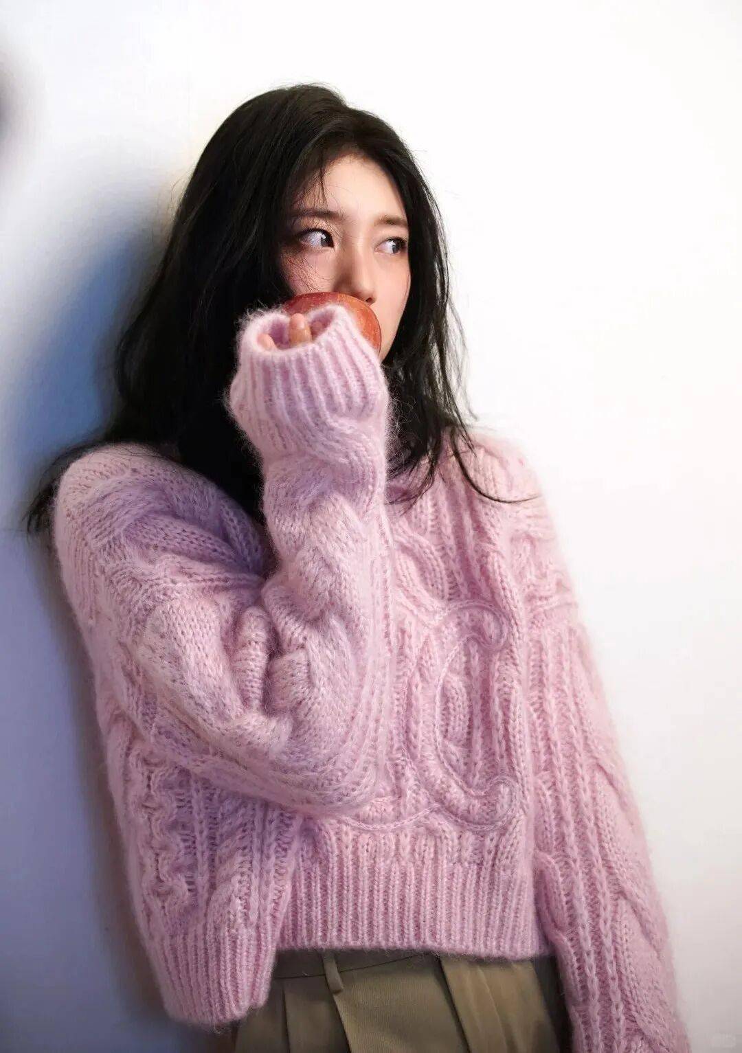 粉色麻花:溫柔顯智慧,配卡其色西裝闊腿褲,營造鬆弛時尚感,自信展露獨立氣質。