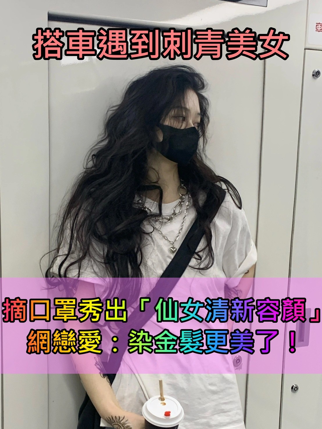 連女生都愛上❤️地鐵上「超帥刺青美女」美到全網瘋狂 摘下口罩「秀厚唇仙女容顏」染金髮仙氣噴發