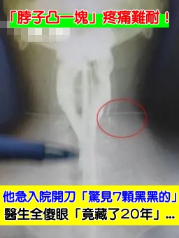 「脖子凸一塊」疼痛難耐!他急入院開刀「驚見7顆黑黑的」 醫傻眼喊「竟藏了20年」...