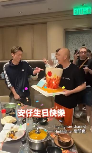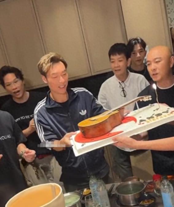 許志安可能提前不知道給自己慶生,穿得就很隨意,除了衣服是知名運動品牌外,其他和普通人沒多大區別。