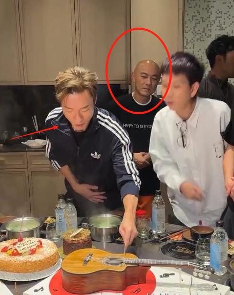 張衛健在兩人後面看切蛋糕,臉上的表情像是很欣慰,又帶著點複雜的情緒。而看似很開心,笑得很燦爛的許志安,嘴角的笑容似乎也有幾分意味不明。