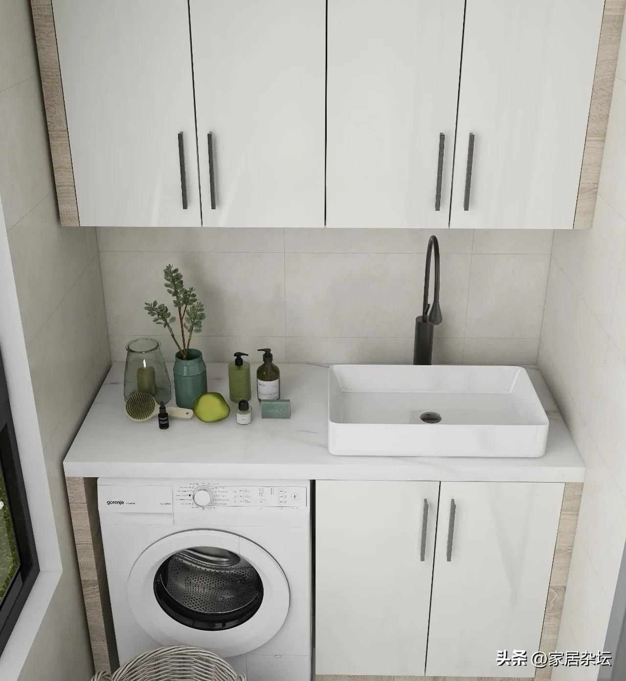 ①、陽台洗衣機的上面,要預留一個大的空間。這個空間是用來收納我們穿過的衣服,也就是準備洗的衣服可以塞在裡面。