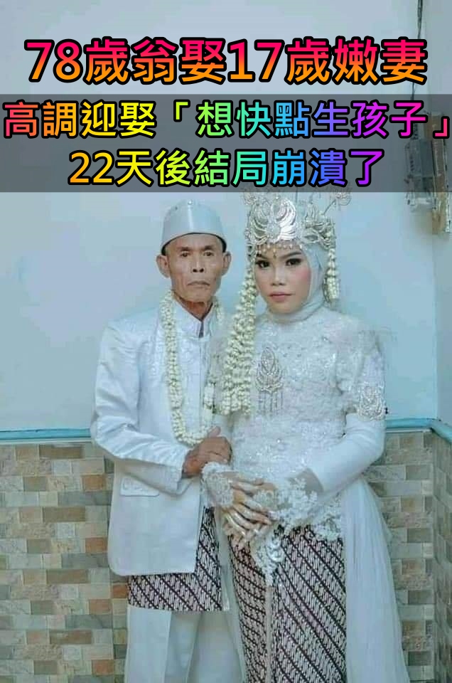 78歲翁娶17歲嫩妻!高調迎娶甜喊「要快點生孩子」 22天後「迎來超悲傷結局」女方家人氣炸