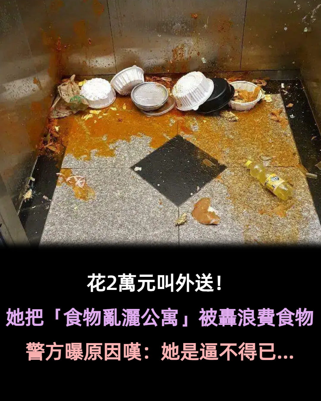 花2萬元叫外送!女子「食物灑滿公寓」電梯也不放過 網氣喊「真的太糟蹋」警方嘆:她是逼不得已