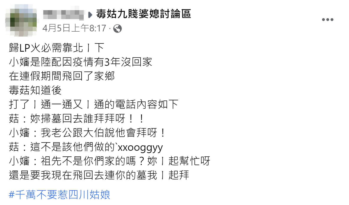 趁清明連假返鄉探親!毒姑卻找碴「妳不回來誰拜拜?」 小嬸「嗆辣妙回1句」網讚翻:高手完勝!