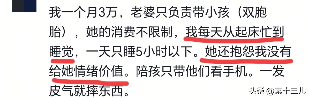 可我也累啊。我在外面忙一天,也想回家聽句好話、吃頓安生飯。