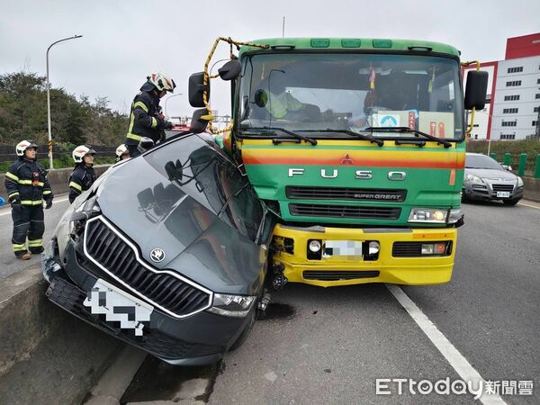根據《ETtoday新聞雲》報導,台61線桃園觀音路段昨日(19日)上午發生致命交通事故,一名52歲曹姓女子駕車行經南下34公里處時,因不明原因將車輛停放於路肩,隨後遭一輛聯結車從後方高速撞擊。轎車當場被擠壓變形,右側騰空卡在中央護欄上,右前輪甚至被撞飛,整輛車幾乎半毀。