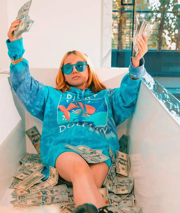 據外媒報導,這名女孩名叫「Lil Tay」,當初她自稱非常有錢,超跑、豪宅、精品包款對她而言幾乎不值一提,甚至常常在影片中豪擲美鈔,引爆正反兩極的評價,卻也成功為她開啟話題、知名度,年紀輕輕就獲得大量粉絲追隨,成為「炫富始祖」。她也在名聲暴漲後,宣佈成為一名饒舌歌手,全力進軍歌壇。