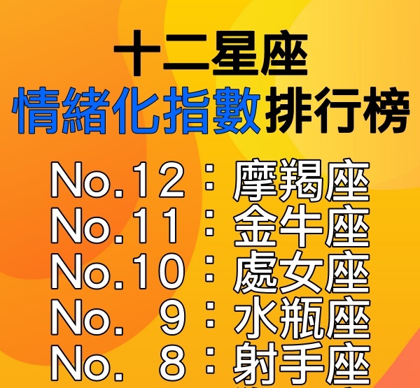 12星座「情緒化指數」排行出爐!摩羯一版一眼「壓抑到會內傷」 冠軍「敏感溫柔」一發作沒完沒了