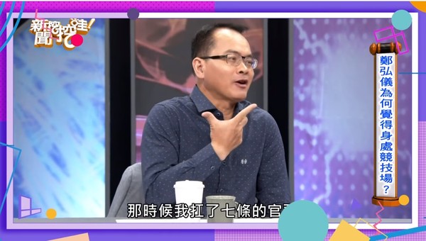 據《ettoday》報導,鄭弘儀是許多談話性節目《大話新聞》、《寶島全世界》、《鄭知道了》的招牌主持,言詞犀利又直接,卻也引來許多爭議、罵名纏身多年!鄭弘儀提到,他其實都知道,很多人攻擊他!10年前他蠟燭多頭燒,身上扛著七條官司、還要擔心節目收視率、加上錄影作息紊亂,心理身體都到了極限!