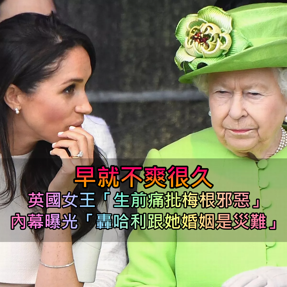 早就不爽很久!英國女王痛批「梅根邪惡又心機」 不滿哈利娶她「形容婚姻是場災難」