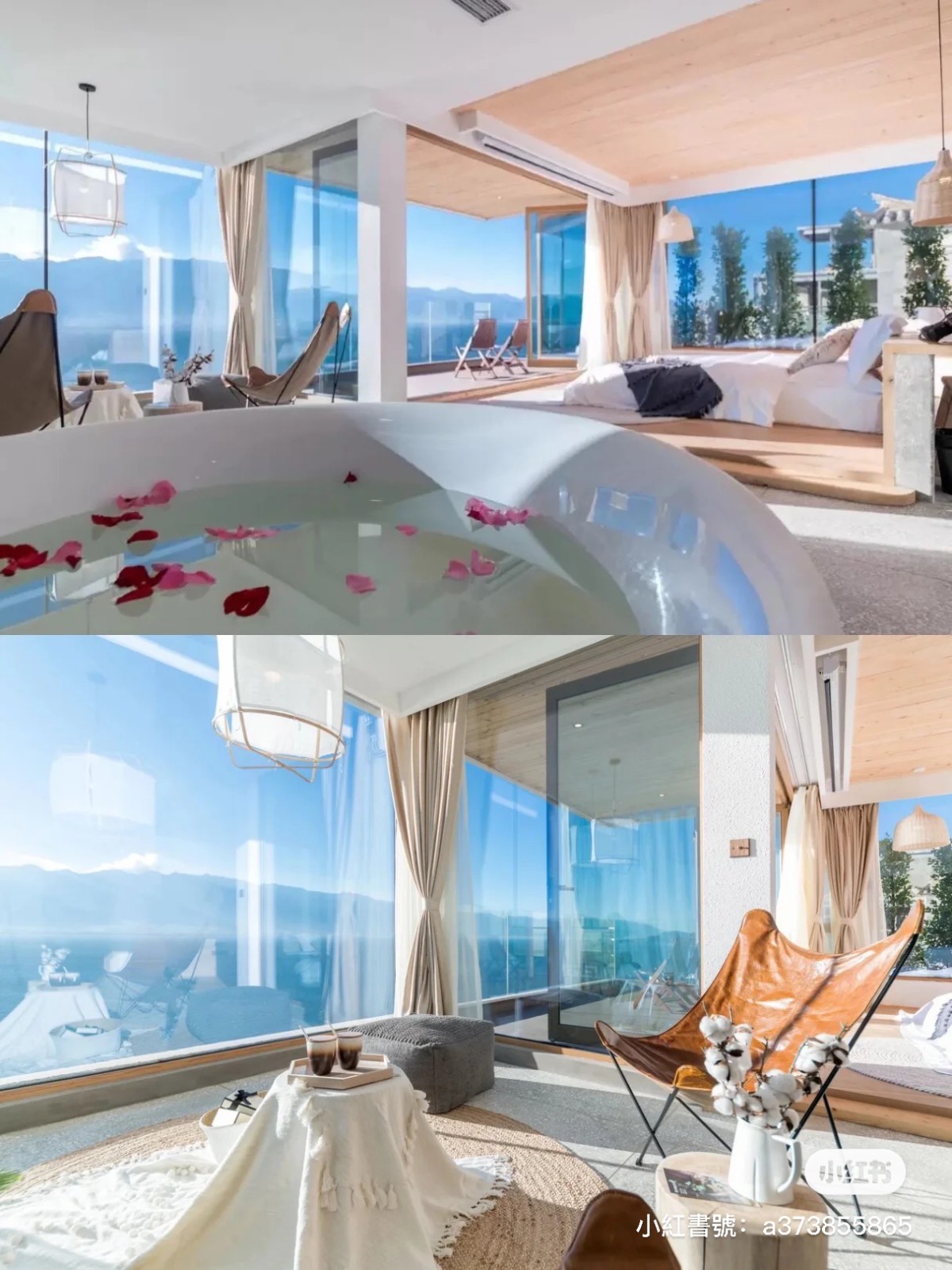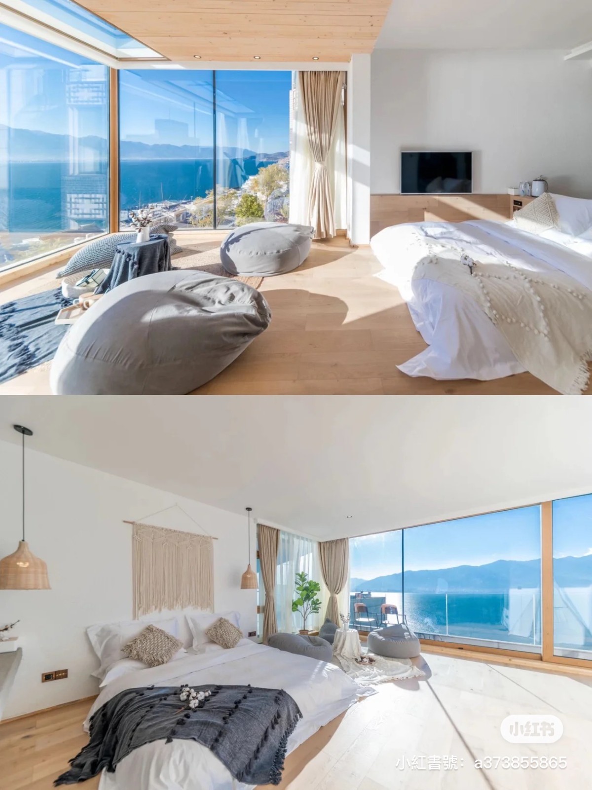 清晨醒來,看著電動窗簾緩緩打開的瞬間,陽光隨之灑落房內,三面環窗採光非常好,大家還可以坐在露台的椅子上享用早餐,看著雲南特有的山海天色,吹著舒服的海風,開啟在大理渡假愉快的一天~