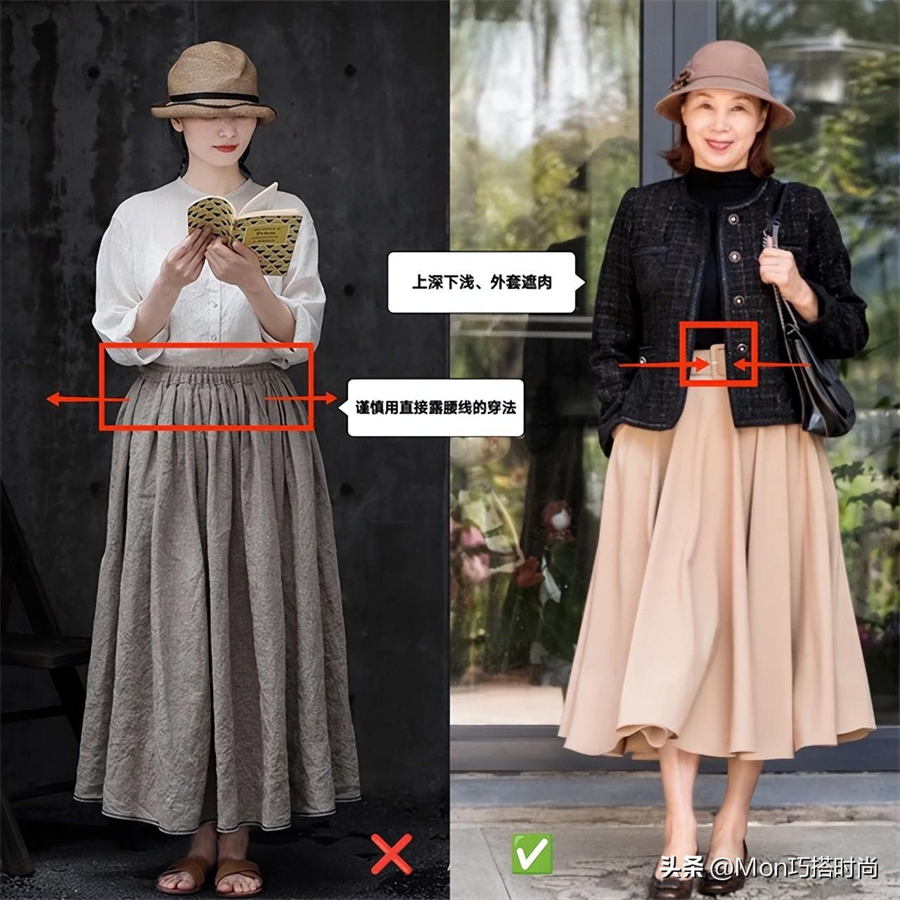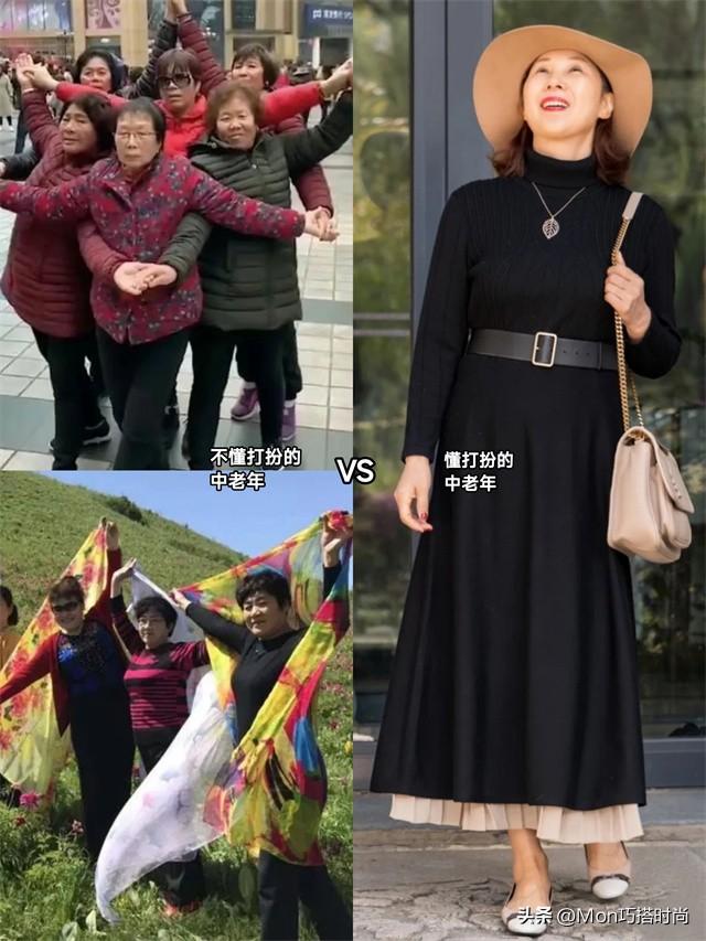 為何會有這種差別?根源是有沒有穿衣打扮的品味。一邊是穿著老年裝、艷俗絲巾的大媽,另一邊是身著優雅長裙的氣質女神,難怪有人老了也很美~