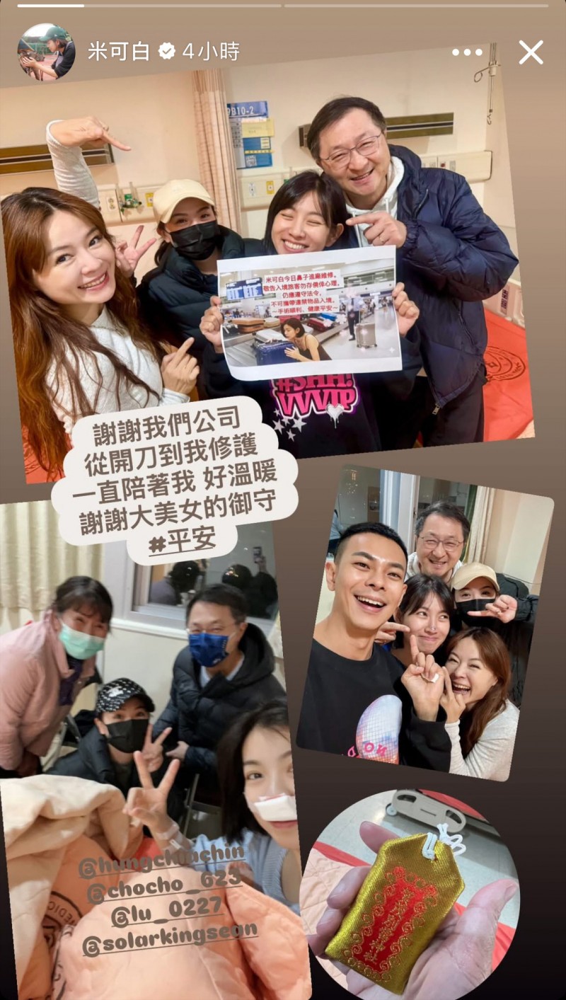 她也幽默分享,此次手術「陪病陣容」相當豪華,除了經紀公司的工作夥伴外,男友孫綻也全程陪在身旁,好友阿諾更親自到醫院打氣,讓整個病房氛圍既溫馨又充滿甜蜜感。