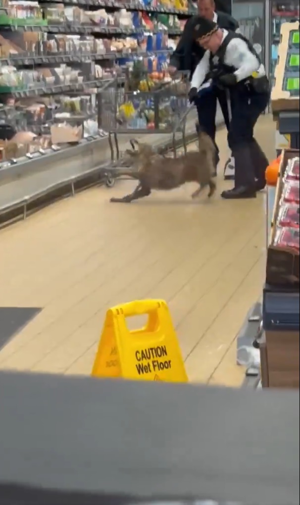 現場廣播不斷重複提醒:「小心!小心!」員警趁機用力抓著那條毛絨絨的尾巴,從冷藏區硬生生拖出來的竟然是一匹郊狼!敏捷的郊狼迅速掙脫又再次躲進貨架後方,把目擊民眾嚇得尖叫逃竄。郊狼最終還是被制伏了,隨即交給芝加哥動物照護和控制中心處置。林肯公園動物園城市野生動物組織的副理麗莎萊勒(Liza Lehrer)表示這並不意外,因為時節關係,人們較少外出活動,所以野生動物在白天會比平常更頻繁出現。