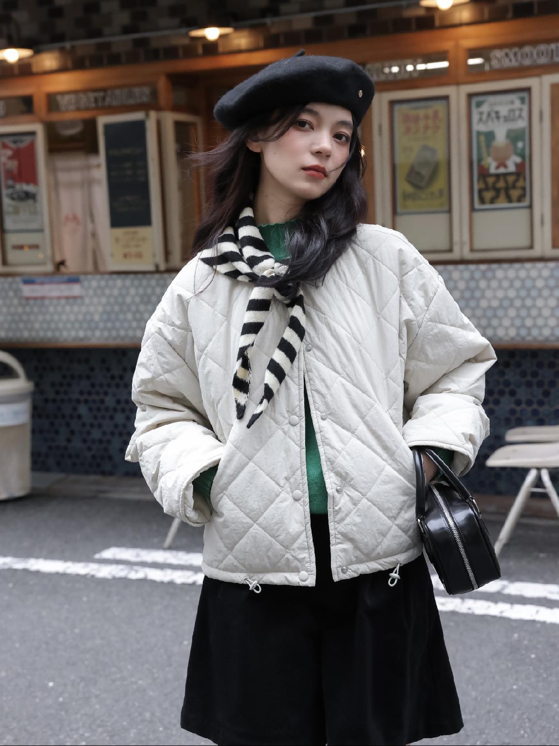 對比傳統的棉衣,奶奶棉服是帶有絎縫線條的棉服,它的款式會更有辨識度,棉服上有橫向、豎向或者是呈菱格紋的絎縫線,這種紋理清晰的製作工藝,讓棉服更有特點。