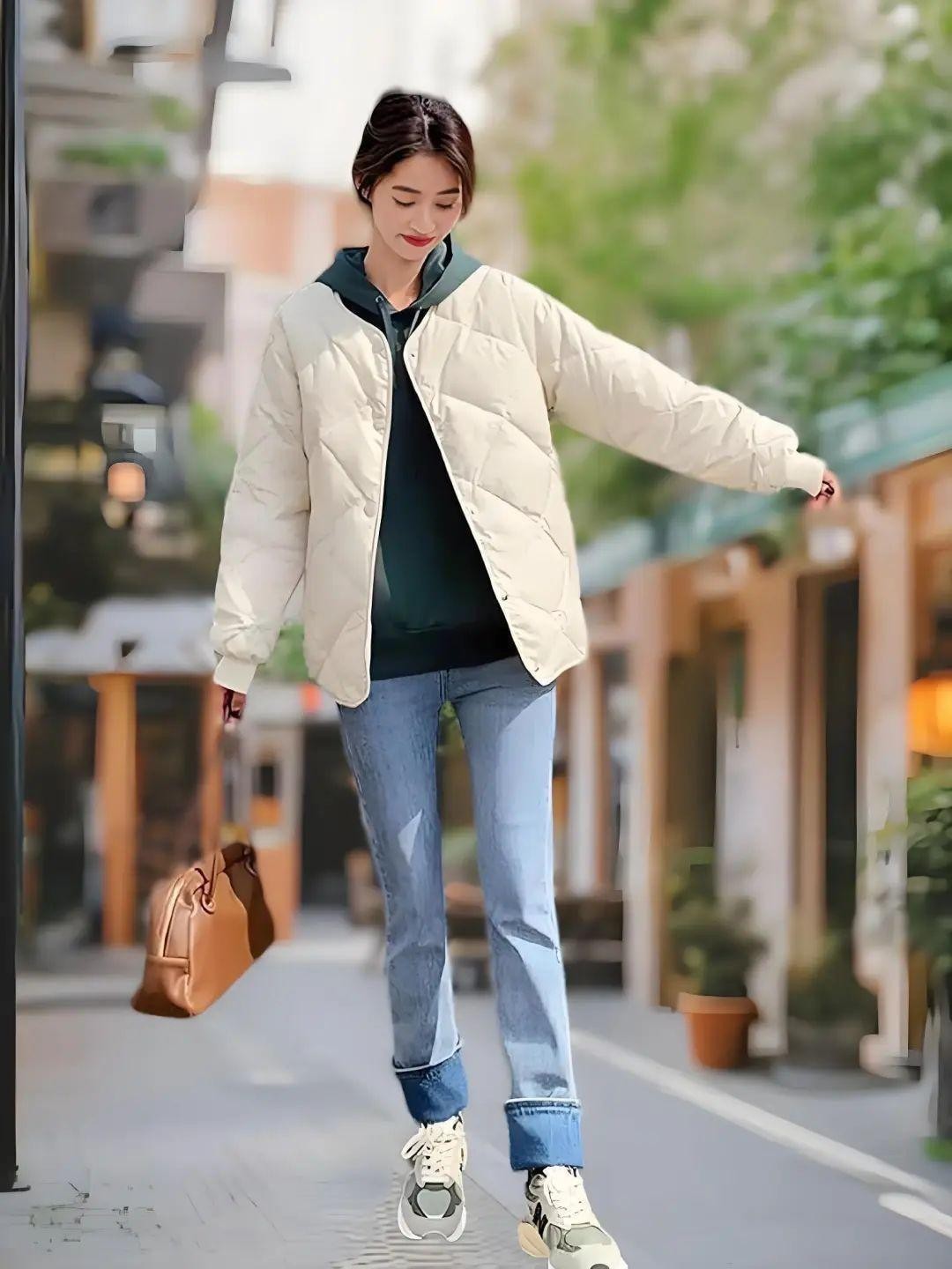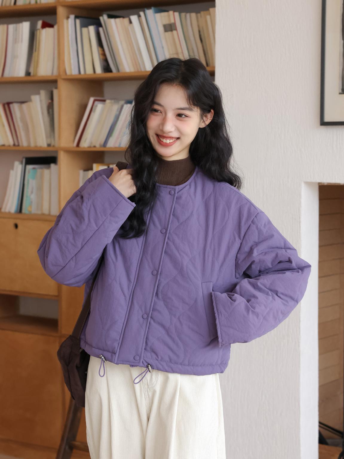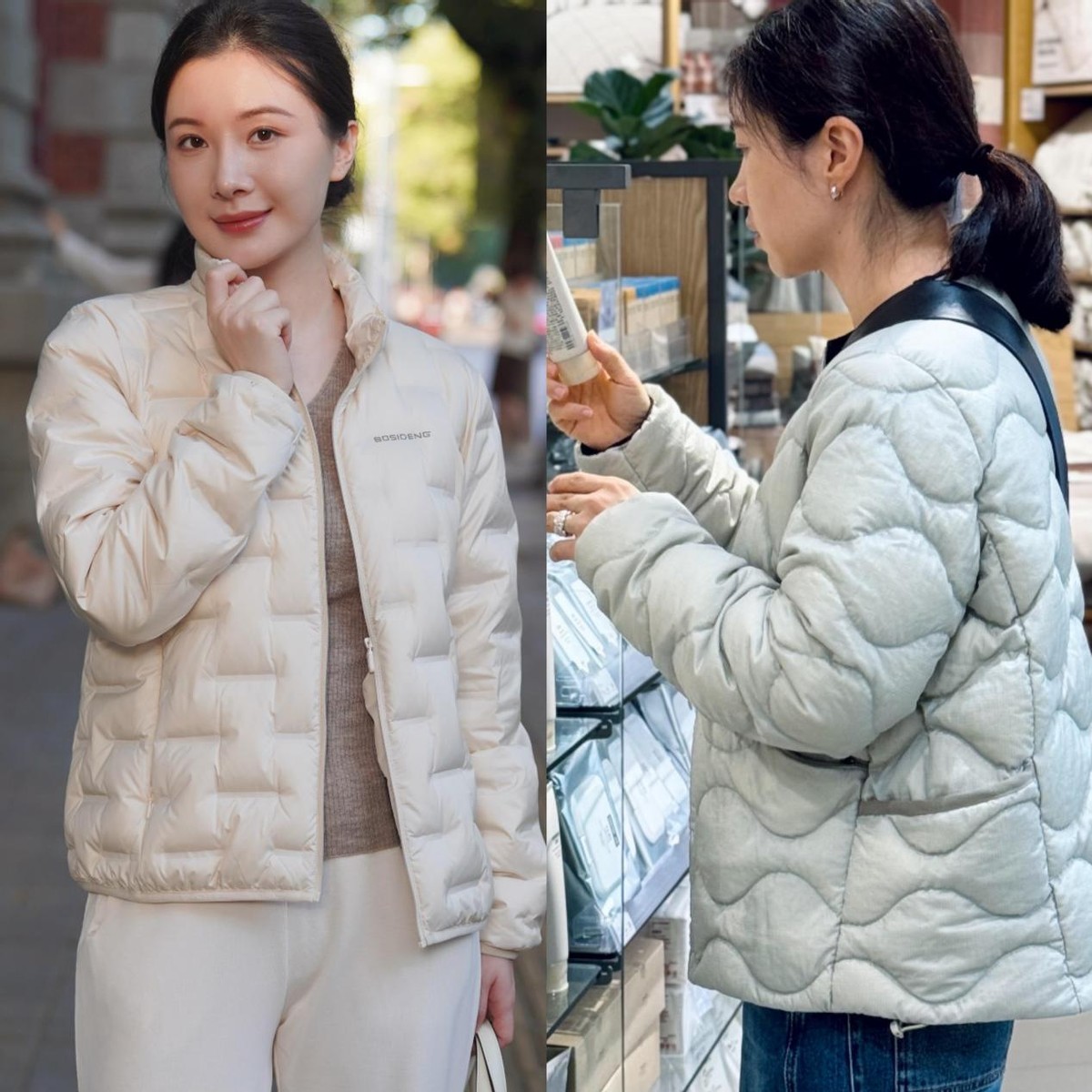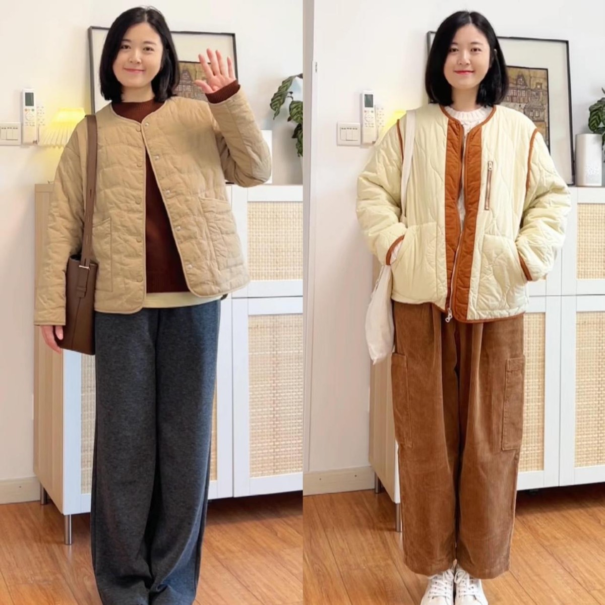 同樣尺碼過小,絎縫棉服變成了緊身外套,反倒會勒出臃腫感,外套的線條不流暢也不美觀。合身的奶奶棉服才是合適的選擇,讓外套和身體留有少許空間,才能修飾身材,還保暖。